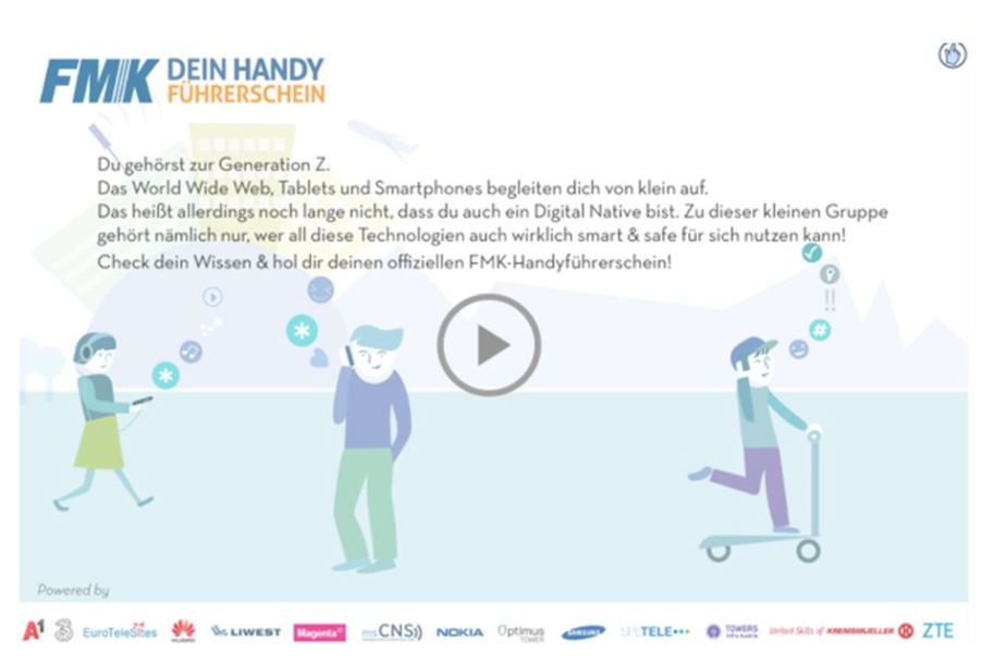Das FMK hat den FMK-Handyführerschein gestaltet und unterstützt Schülerinnen und Schüler mit diesem digitalen Bildungsangebot beim verantwortungsvollen Umgang mit Smartphones und Tablets.